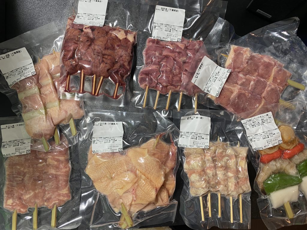 千葉県にあり1921年創業の鶏肉と鶏卵の専門店です。うなじいは、写真の『焼鳥 ヤキトリ 生 串もの キャンプ BBQ セット』を購入してみました !! もも、ねぎま、つくね、レバー、砂肝、そり、きりん、いかだの8種類の部位とタレ1合と沖縄の天然塩1袋です。どの部位も肉厚で大きくて、見た瞬間『すごっ!!』という感じでした。しかも、焼いても身が小さくなることもなく、柔らかでジューシーです。