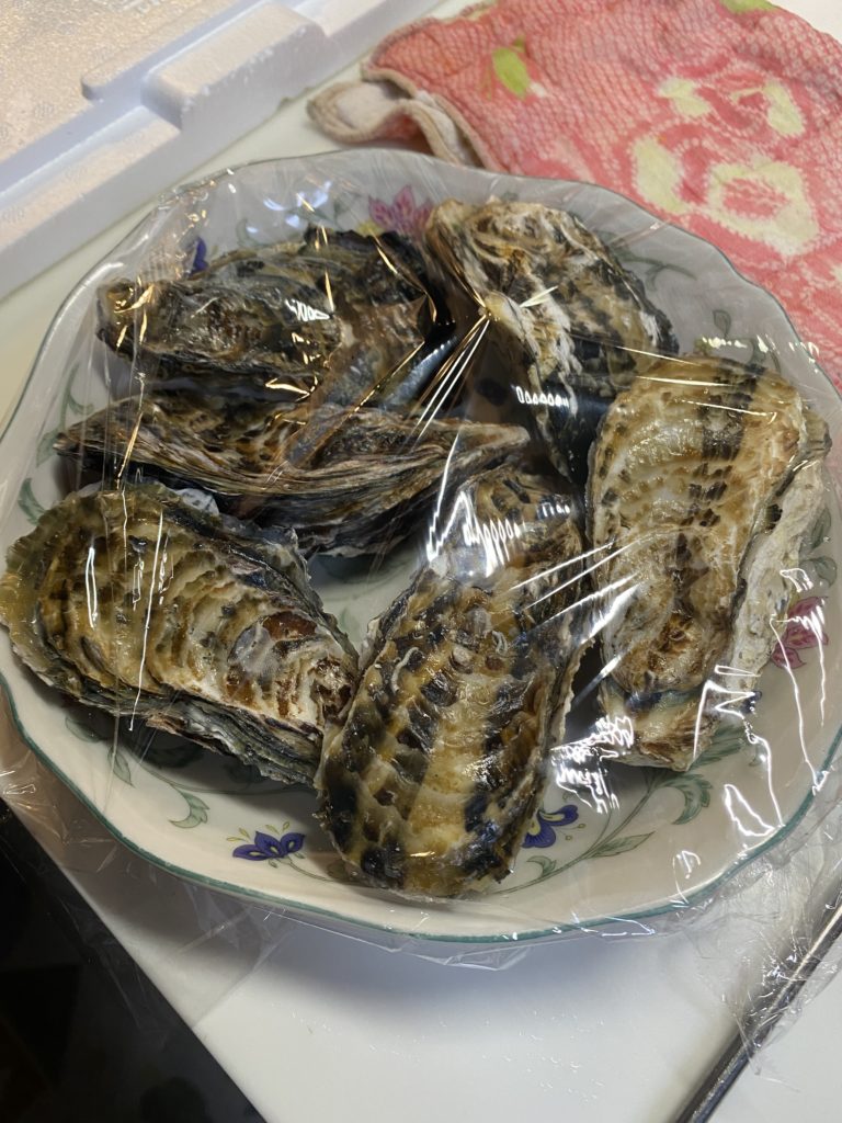 この殻付き牡蠣は、どう調理するのがベストかというと、“ レンジで チン ” 。 簡単でしょ !!