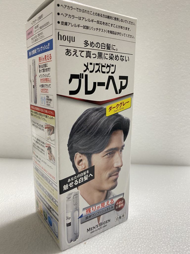 あえて真っ黒に染めない、多めの白髪にとのセールストーク。染め上がりの状況がわからないので、まずはダークグレーをチョイス。年相応で清潔感ってキャッチが気に入りましたwww。しかも価格は、なんと、800円程度です。ヘアサロンでは数千円ですからお得です♪