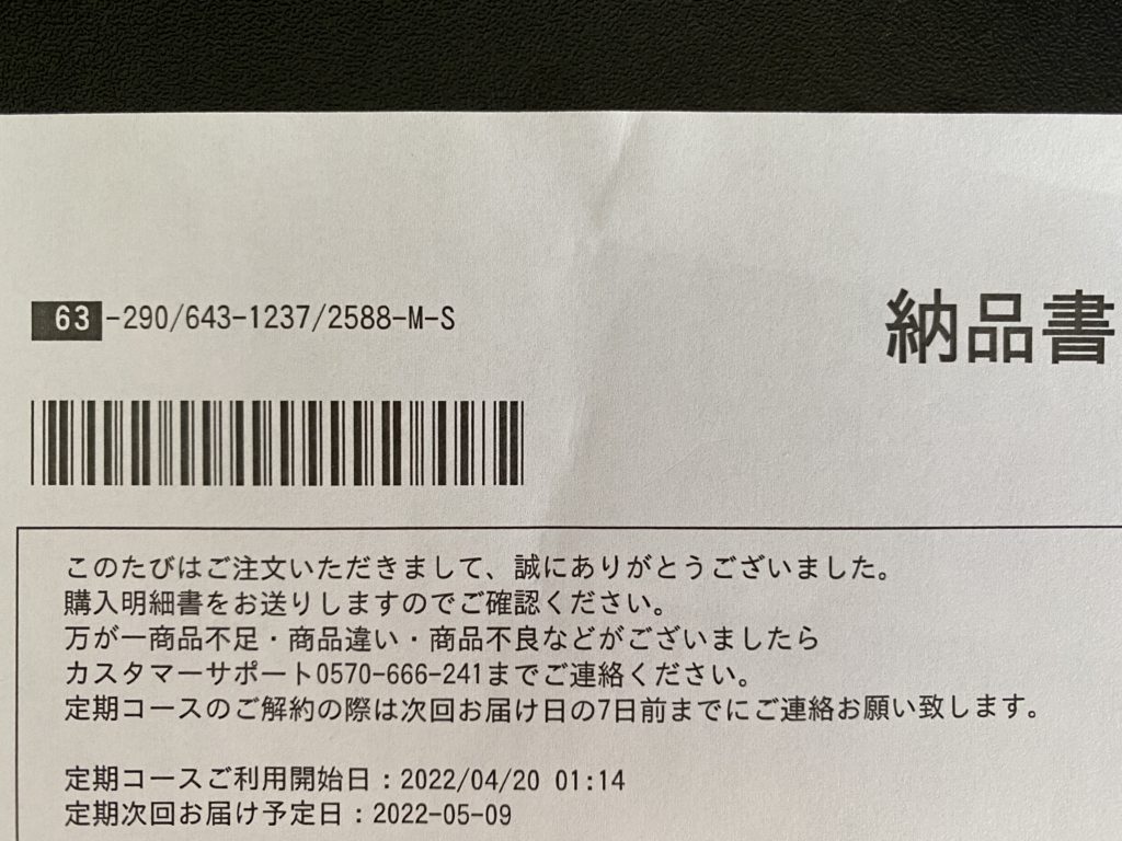 さらに、びっくりしたのは、4/30に届いた際に同梱されていた納品書に、