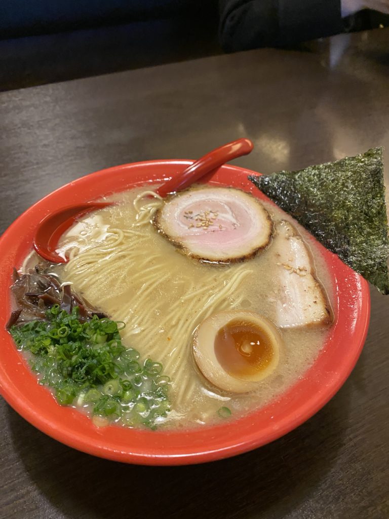 うなじいは、忍玉ラーメン(¥850)をチョイス。豚骨醤油なんだけど、塩分少なめであっさりした感じです。ストレート麺との相性も良く、食べやすい一品です。