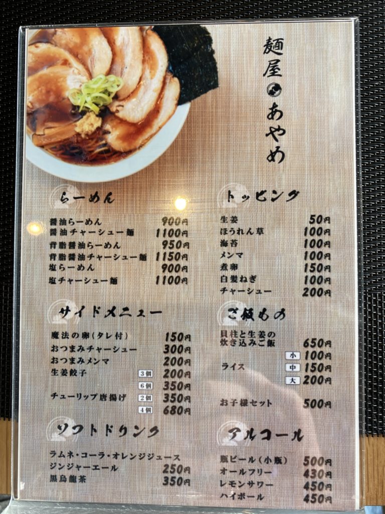 2023年2月12日にグランドオープンした『麺屋 あやめ』さん。生姜専科というフレーズが気になって行ってきました。オープンしたてということもあってなのか店内はとっても綺麗!! 更に、お店の正面には、「黄金比率」「至高」とか「匠」「極み」などの気になるキャッチが・・・・。